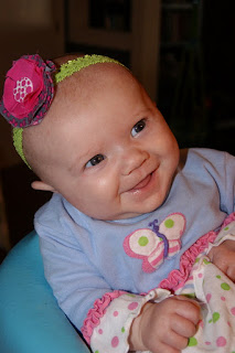 Here's little Roo feeling crummy but still being a good sport donning her cute new headband and house slippers.